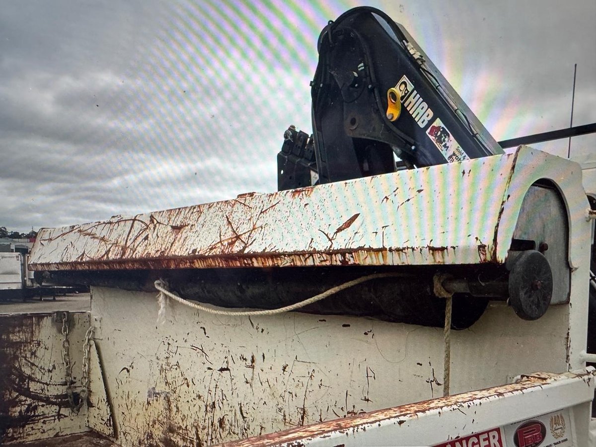 A low kilometer, ex council tipper with remote control large capacity crane for half its replacement value.